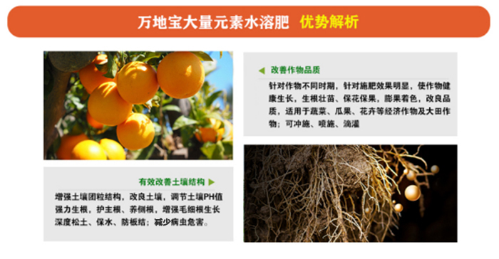 萬地寶大量元素水溶肥料采用磷酸二氫鉀或礦源黃腐酸鉀為原料,特別添加海藻酸與螯合微量元素,根據(jù)作物生長階段所需營養(yǎng)設(shè)計配方,適合多種施肥方式,省時省力。